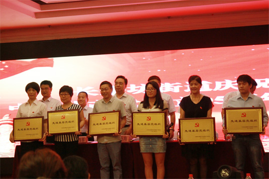 7月1日在我党成立95周年之际,长乐坊街道举行了庆祝党95周年庆典活动及优秀党组织、优秀党务工作者、优秀党员颁奖典礼,我公司荣获先进党组织,李玉梅老师获得优秀党务工作者、丁立先生获得优秀党员称号,会上长乐坊街道办的副主任做了纪念党成立95周年演讲,并和其他几位领导一起给获奖单位和个人颁奖,会议还举行了唱国歌仪式和新党员入党宣誓老党员重温入党誓词仪式,最后还有歌舞助兴,整个颁奖仪式在一片欢乐祥和的氛围中结束。