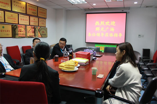 本月三号,群光广场领导来我公司考察,我公司李总、郭总和周经理在会议室招待了她们,她们对我们的资质进行了查看,并对保洁一些事项询问,我们李总和郭总都做出来解答,中途李总还播放了我们服务点的现场视频,最后由周经理带着她们去我们的服务现场进行了参观。