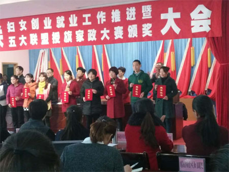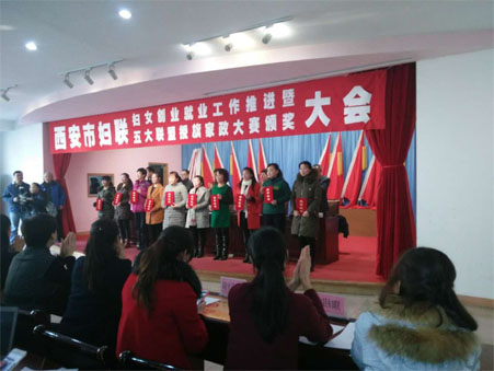 经过激烈的角逐,我公司员工李金棉和余财云在西安市家协组织的技能大赛中分别取得了二等奖和三等奖,本月22号市妇联及市家协等领导为她们举行了颁奖仪式。