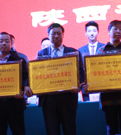 本月二十号,我公司和陕西清洗保洁协会联合举办了年会,会上我们公司以舞蹈助兴,获得二等奖,而后我公司获得“2017年标准化规范化先进单位”、“2017年守合同重信用单位”、“2017年保洁行业二十强单位”、“2017年安全工作先进单位”四项荣誉。